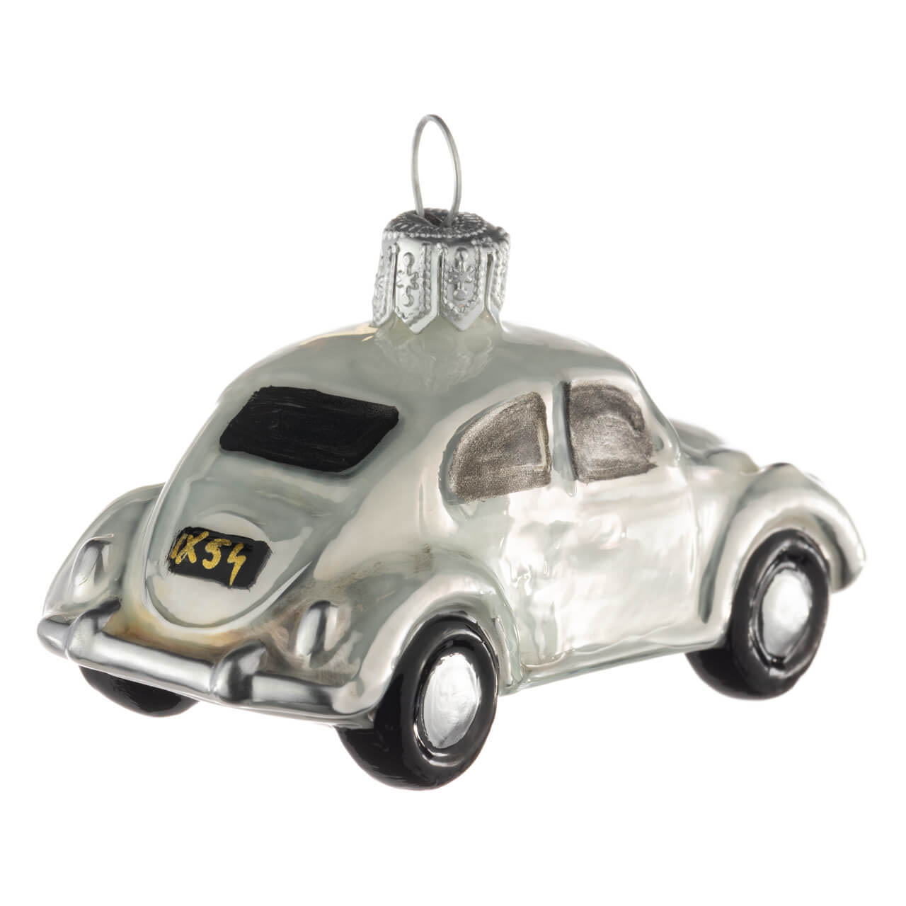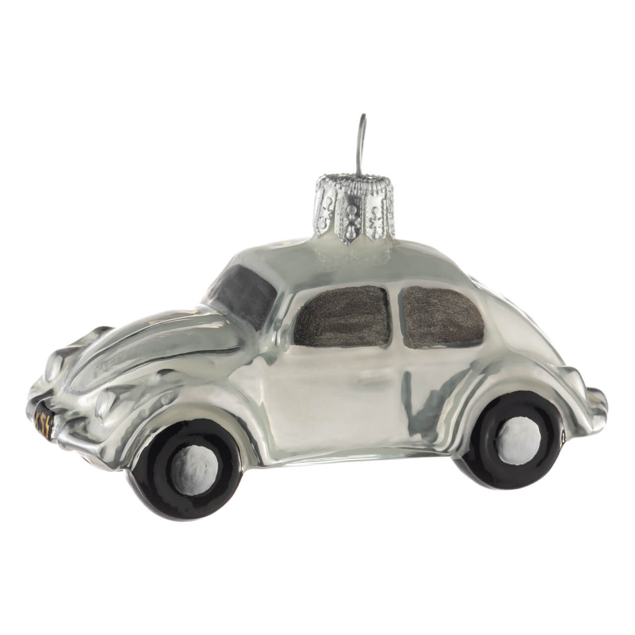 In elegant white with silver contours on the radiator and rear, glittering windows and shiny black tyres, this carefully painted Christmas tree figurine brings back some wonderful memories ..