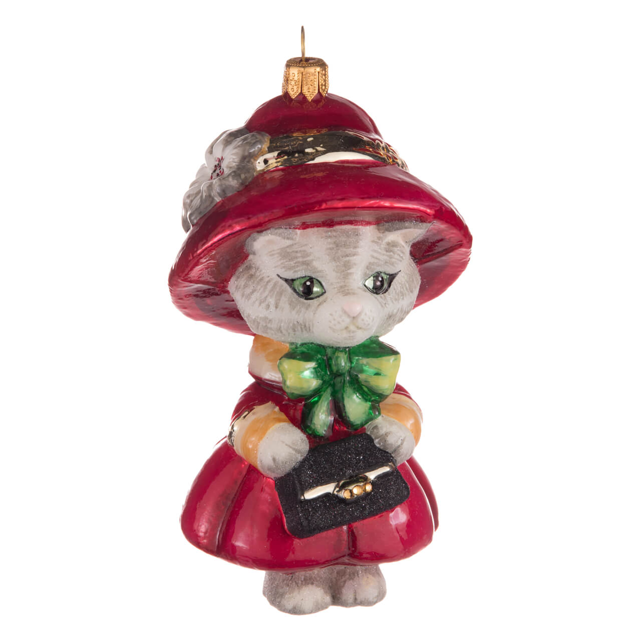 However, when you look into its green, almond-shaped eyes with the characteristic, elongated pupils, it is immediately clear that it is not a human, but an incredibly cute kitten that has dressed up and melts our hearts. White-grey tabby with a glittery dusting for the perfect furry look, the cat girl stands upright on her hind paws. The cute little snout shines in light pink and the accessory in the front paws is also a real eye-catcher: a classic, black ladies' handbag sparkles glamorously with a shiny silver front flap and a clasp decorated with three gold rhinestones.