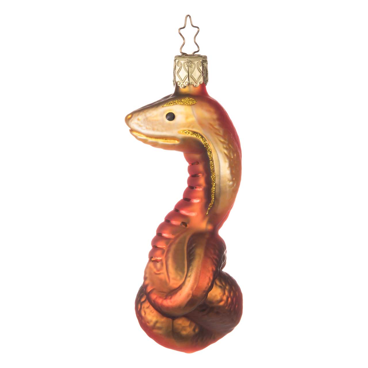 This design shows an upright cobra with a curved shape and a body in warm shades of red and gold. The scales are finely worked out and the characteristic hood is emphasized by golden accents. The interplay of shiny and matt surfaces gives it a lively, almost mystical appearance.
