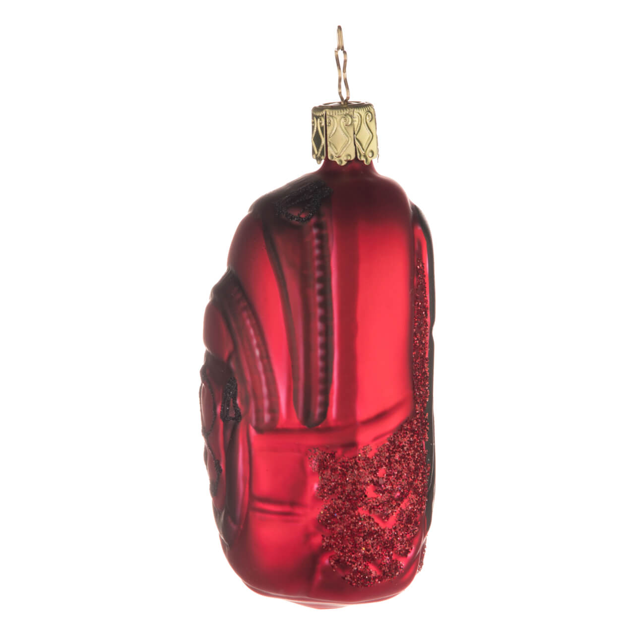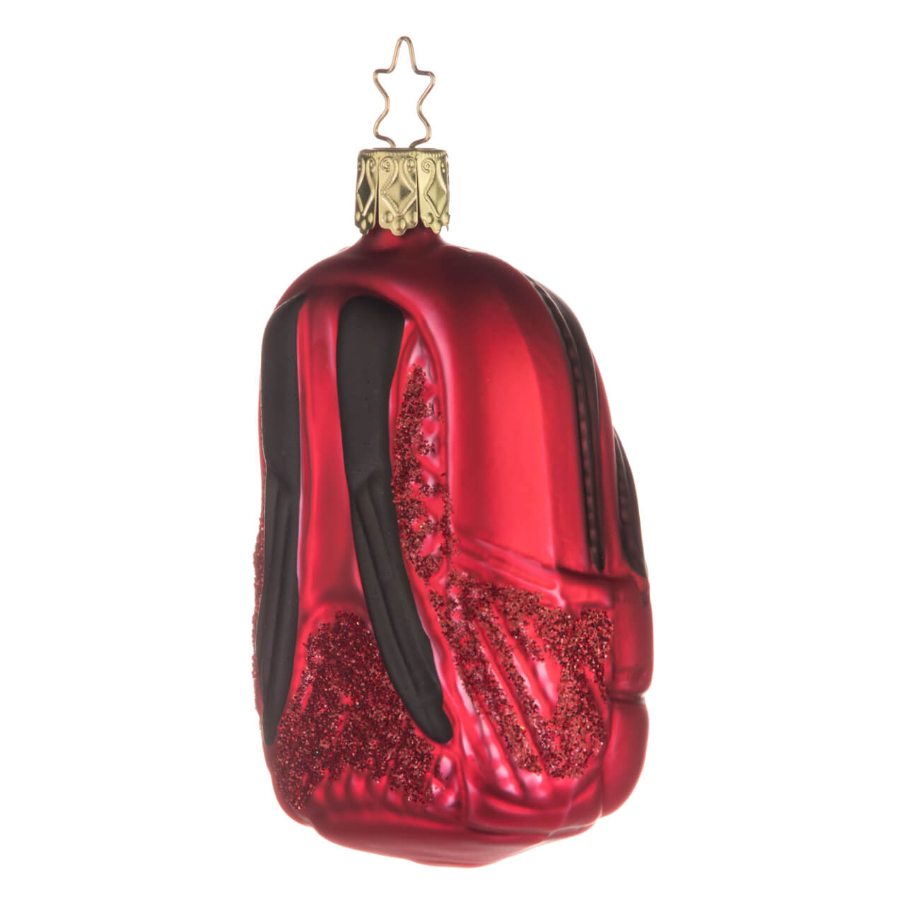 As a bright red eye-catcher in the green of the fir tree, however, its overall composition is particularly impressive: the bright red colour, which is so elegant rather than obtrusive thanks to its matt finish and is both striking and discreet at the same time. The oval shape, which brings calm to the figure, yet has numerous pockets, zips, seams and eyelets. Black glitter details on the elasticated straps and tabs as well as red glitter to highlight the side pockets and the well-padded back ensure a glamorous effect despite the trekking look. The matt black shoulder straps also have a classic look and support the simple daypack design.