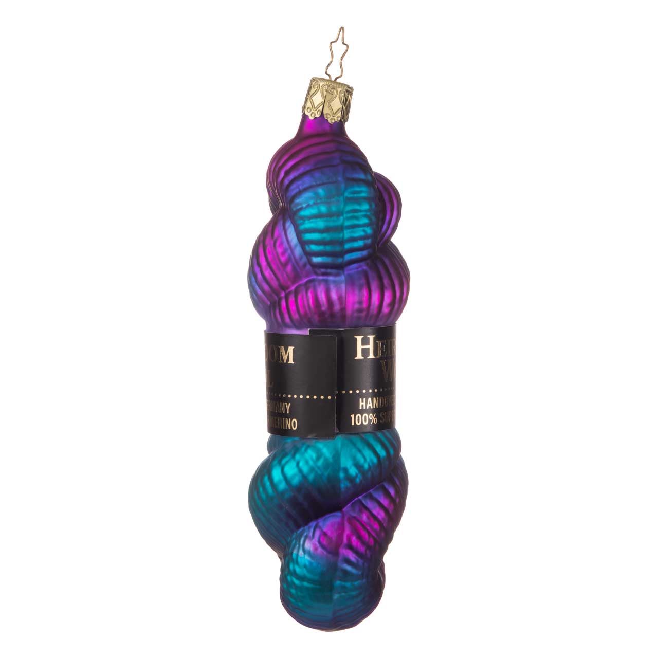 The glass figurine is shaped like a carefully coiled skein of wool, finished with a black banderole label for an authentic look. There is a choice of different colors