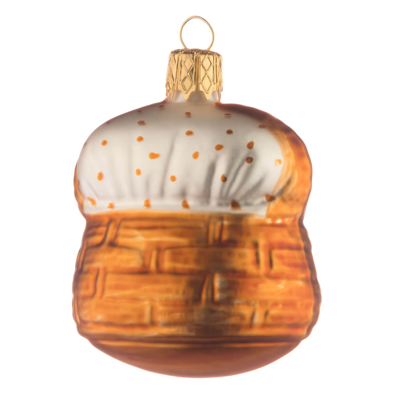 At first glance, this ball may seem almost inconspicuous, but its design is just too cute: If you approach it from the back, you don't get a hint of anything grand. The oval-shaped basket with its large, flat handle, on which the golden crown for fastening is enthroned, shimmers bright brown. The contents? Well concealed under a matt white shimmering cover, on which little dots have been lovingly dabbed in the same shade of brown! If you then go to the front ... they look at you promptly and curiously: Two little kittens with silky white fur, cute little faces with snouts and whiskers and small, delicate claws on their paws, with which the two little ones hold on to the edge of the basket.