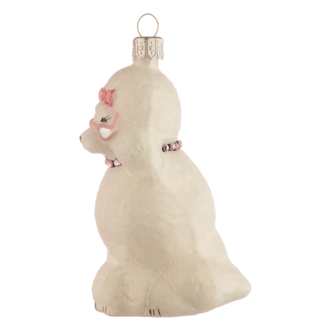 On the other hand, it is absolutely clear that this can only be a poodle (and a real beauty at that)! Because only the poodle had become a true fashion dog, especially in the 1950s, which was dyed, styled, caressed and humanised - thanks to its wonderfully manageable, luxuriant coat. This glass figurine pays homage to those crazy times on your Christmas tree. And it comes in two versions, which not only exude a great deal of humour but also plenty of glamour.