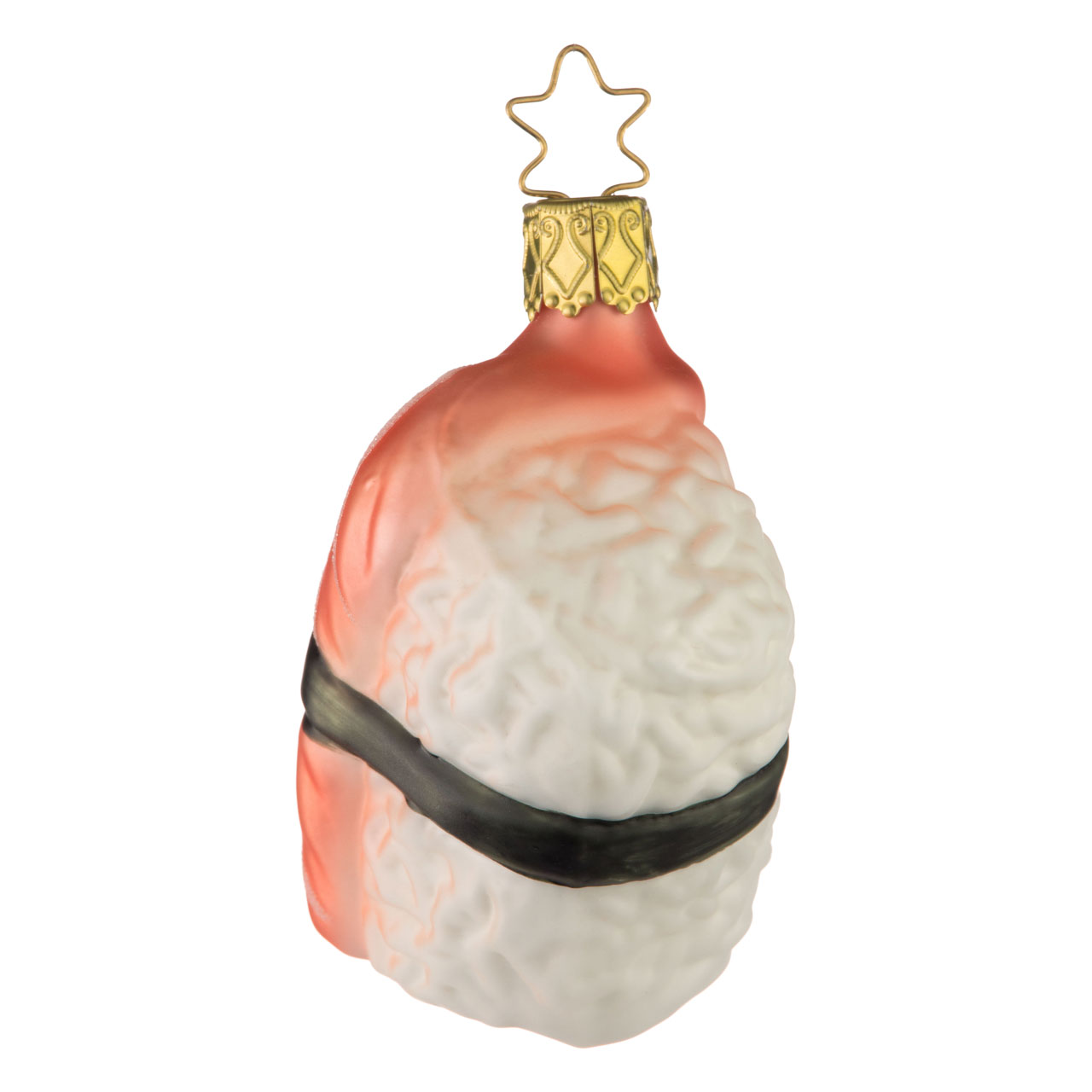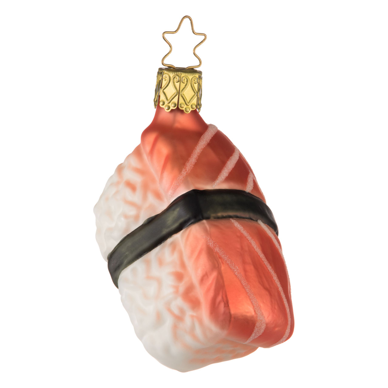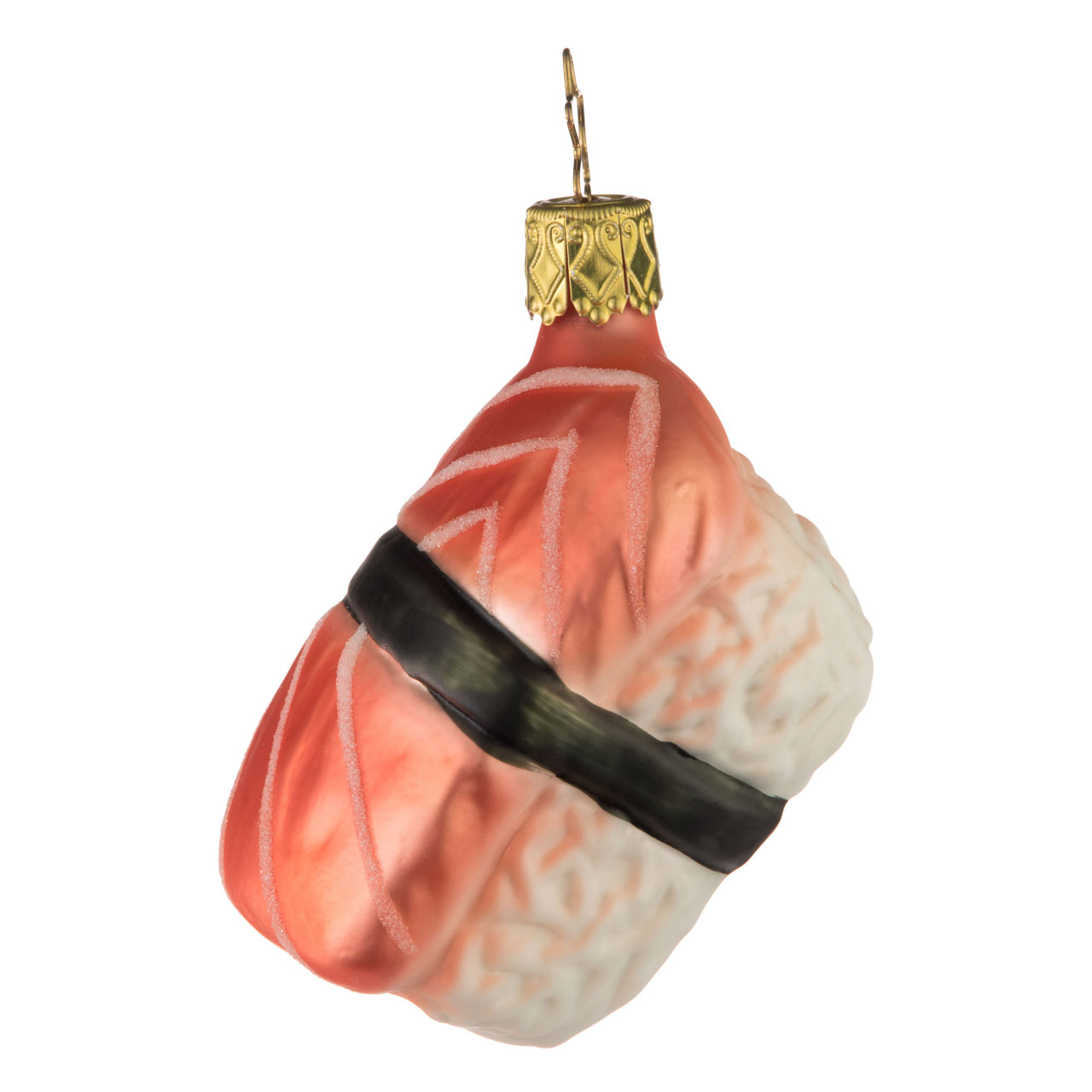 However, with this delicious little figurine, you don't have to miss out on your favourite dish on Christmas Day. As a fresh salmon nigiri, this small Christmas tree figurine with its white rice cuboid, light pink fish strip and narrow seaweed band is sure to catch the eye of many. And with its simple and humorous elegance, it might even make even sushi haters smile ...