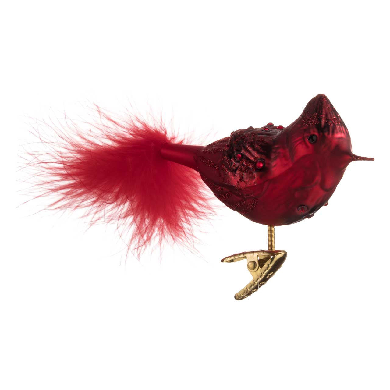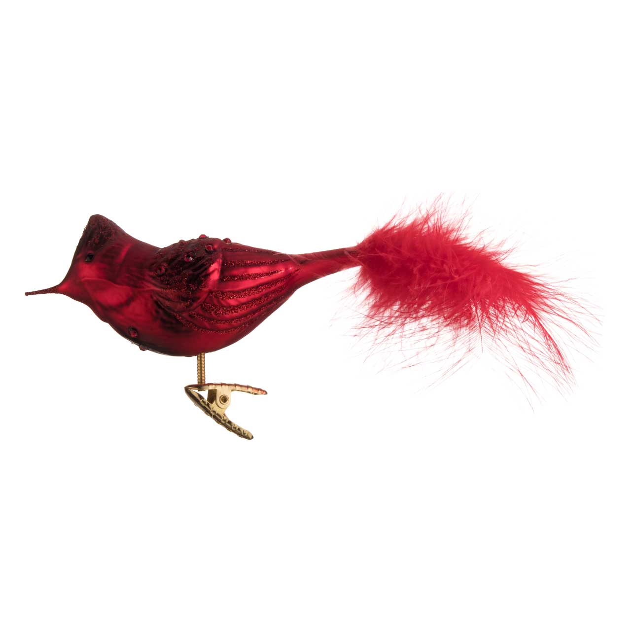 This figurine captures exactly this feeling: a stylized bird with gentle curves and fine details, whose vibrant red is further emphasized by shimmering and glittering accents. The long, fluffy tail of feathers gives it a playful lightness and movement. Overall, the figure appears slender and elongated, with a shiny red body, dark shades and sparkling highlights that give it a particularly elegant and lively appearance.