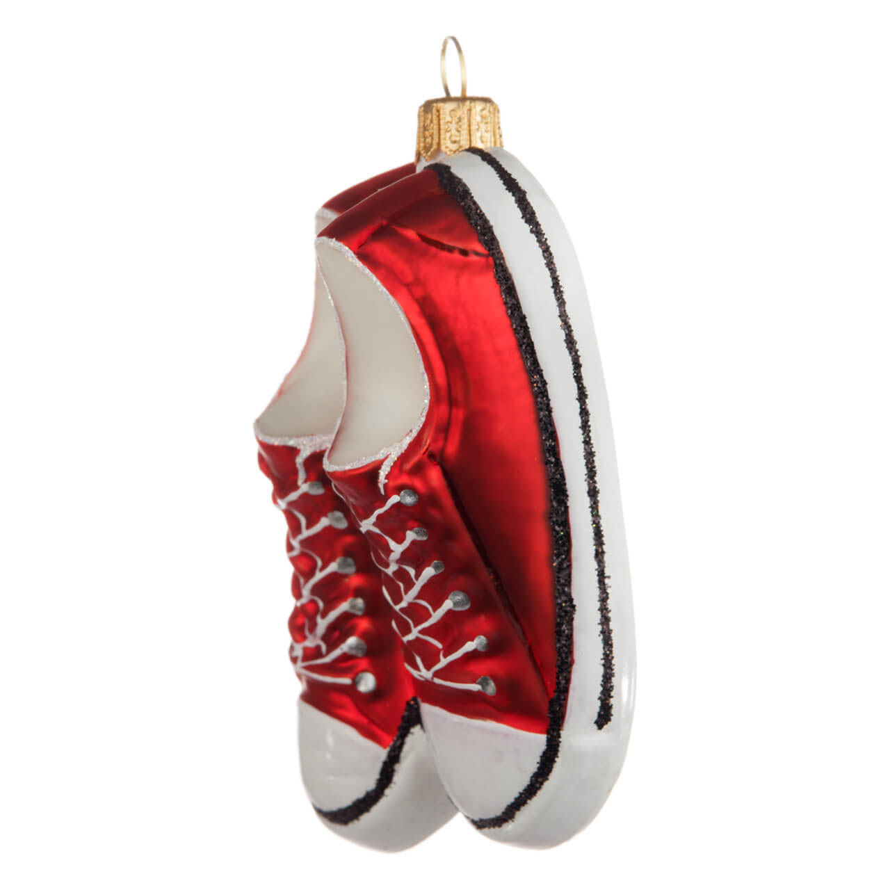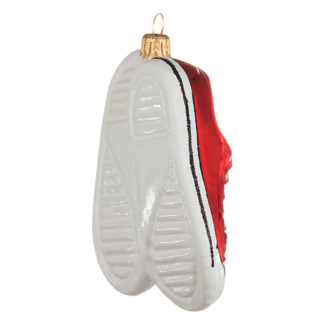 Simply wear your beloved trainers on the tree and make a fashion statement that will take the wind out of the sails of any critics. In festive matt red, shiny white soles and with black glitter outlines, the pair definitely looks classy and is a real eye-catcher in the fir green.