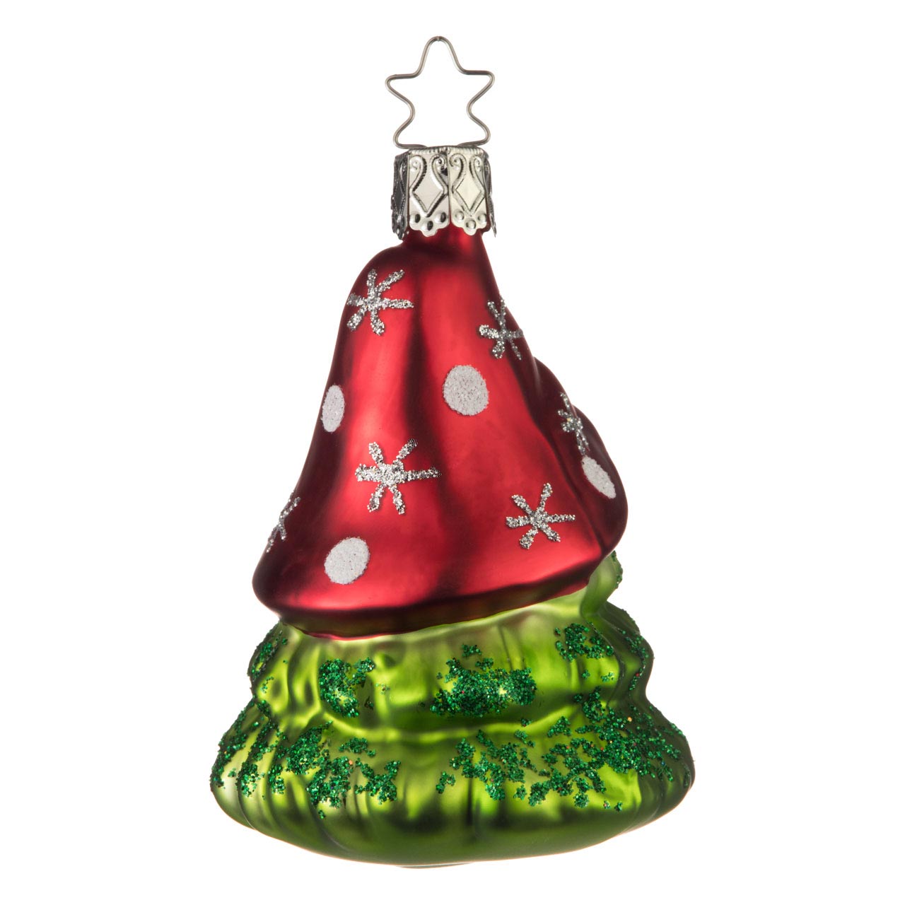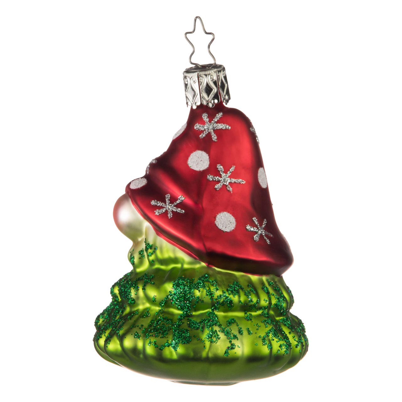 Because the creature just looks funny, funny, absolutely cute. A fir tree clearly forms the foot, the base of the whole thing, which in turn can be seen as a light green, dark green glittered beard. The nose follows immediately above: skin-coloured, large and round. As the crowning glory? No, as a mezzanine, because on top is a large, Christmas red pointed cap, decorated not only with white dots but also glittering silver stars.