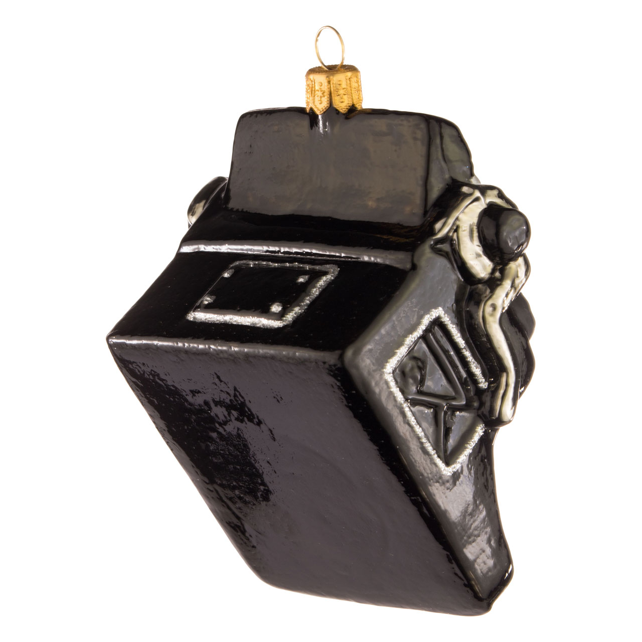 Just like this piece, which has been skilfully blown into a nostalgic shape and lovingly decorated or painted with all the details. The typewriter for the tree has a classic look in glossy black. Fine silver glitter lines emphasise all the contours. Keys and buttons are emphasised with silver pots. Anthracite-coloured elements adorn the adjustment wheels and the famous lever for controlling the carriage.