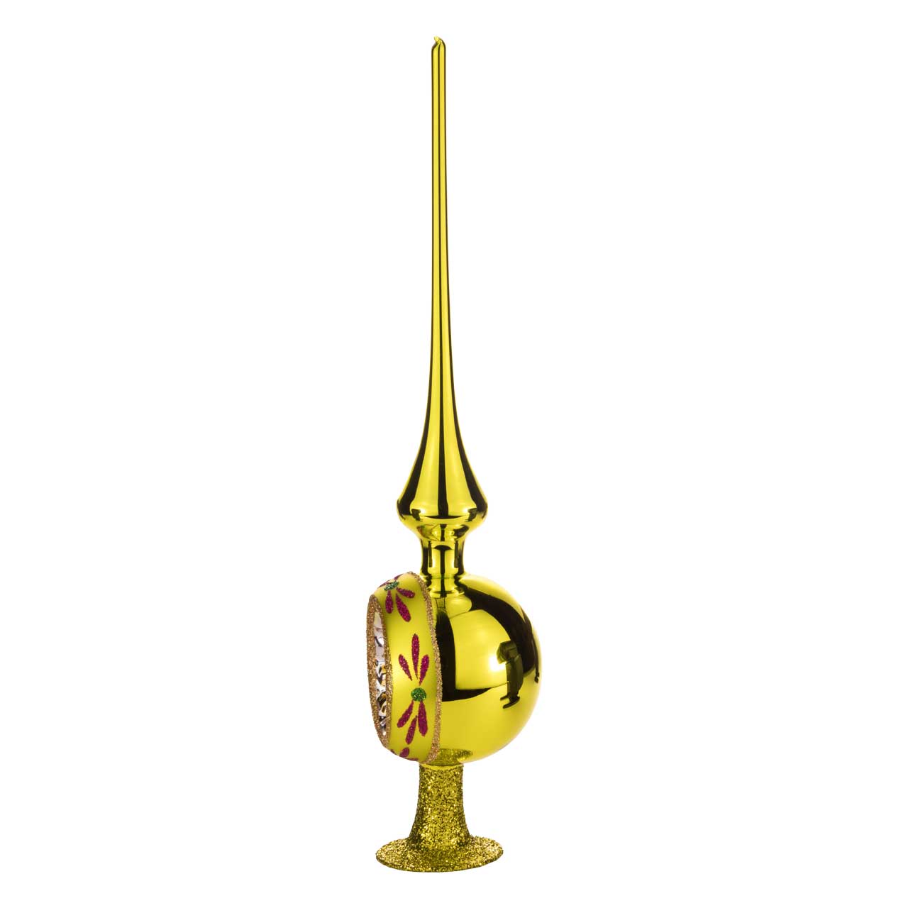All that remains to be decided is the paint finish, which you can choose from a wide range of styles depending on your taste and color: In the case of this top, a vibrant silver, yellow and pink glow has been combined with fresh grass green. The base has been dusted with green glitter and the filigree glitter decorations on the edge of the ball are reminiscent of flowers and leaves.
