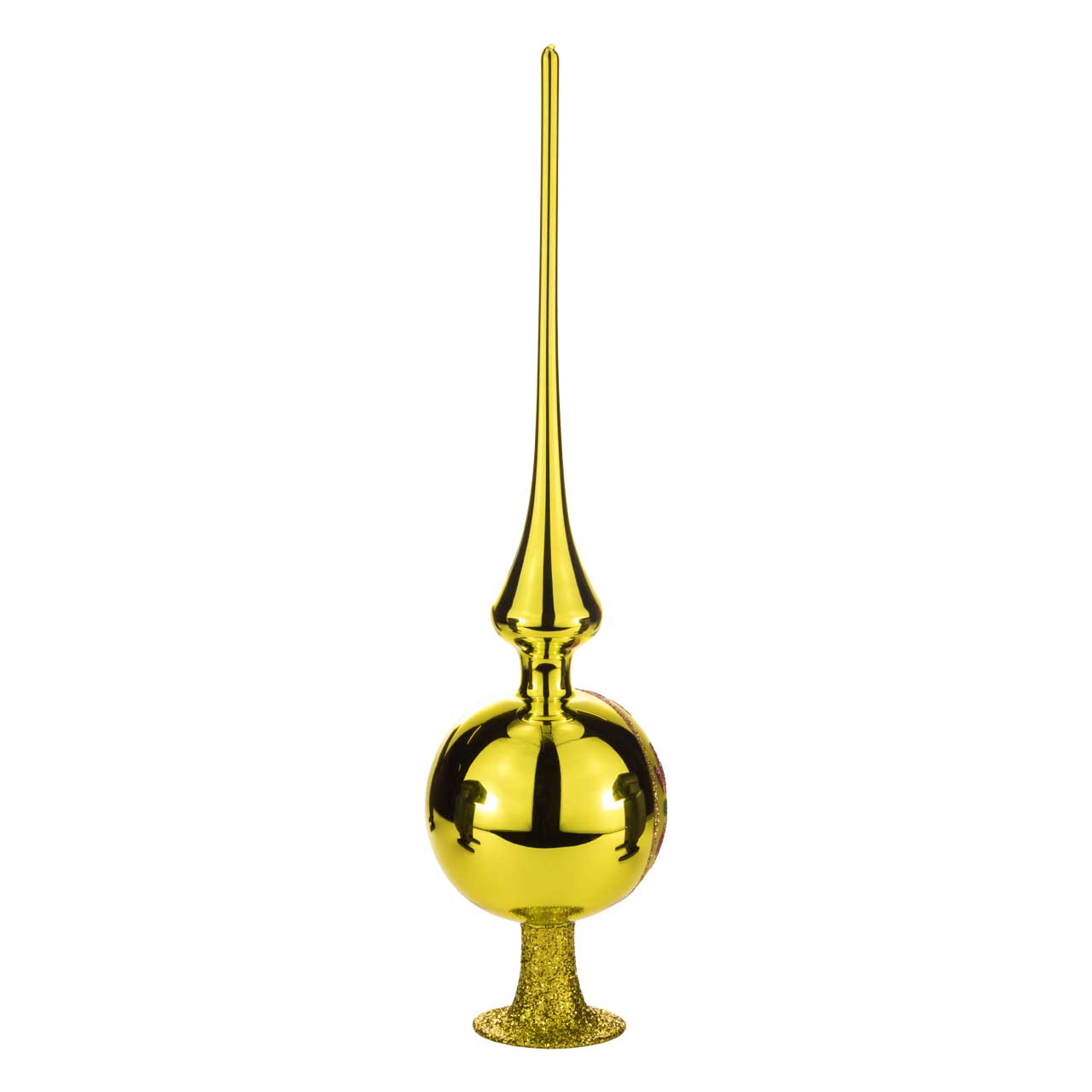The main focal point above the base is a sphere. It is round and has the artistic reflective indentation at the front that gives it its name. But that's not all. A long, tapered top sits on top of it - a worthy finishing touch for any Christmas tree.