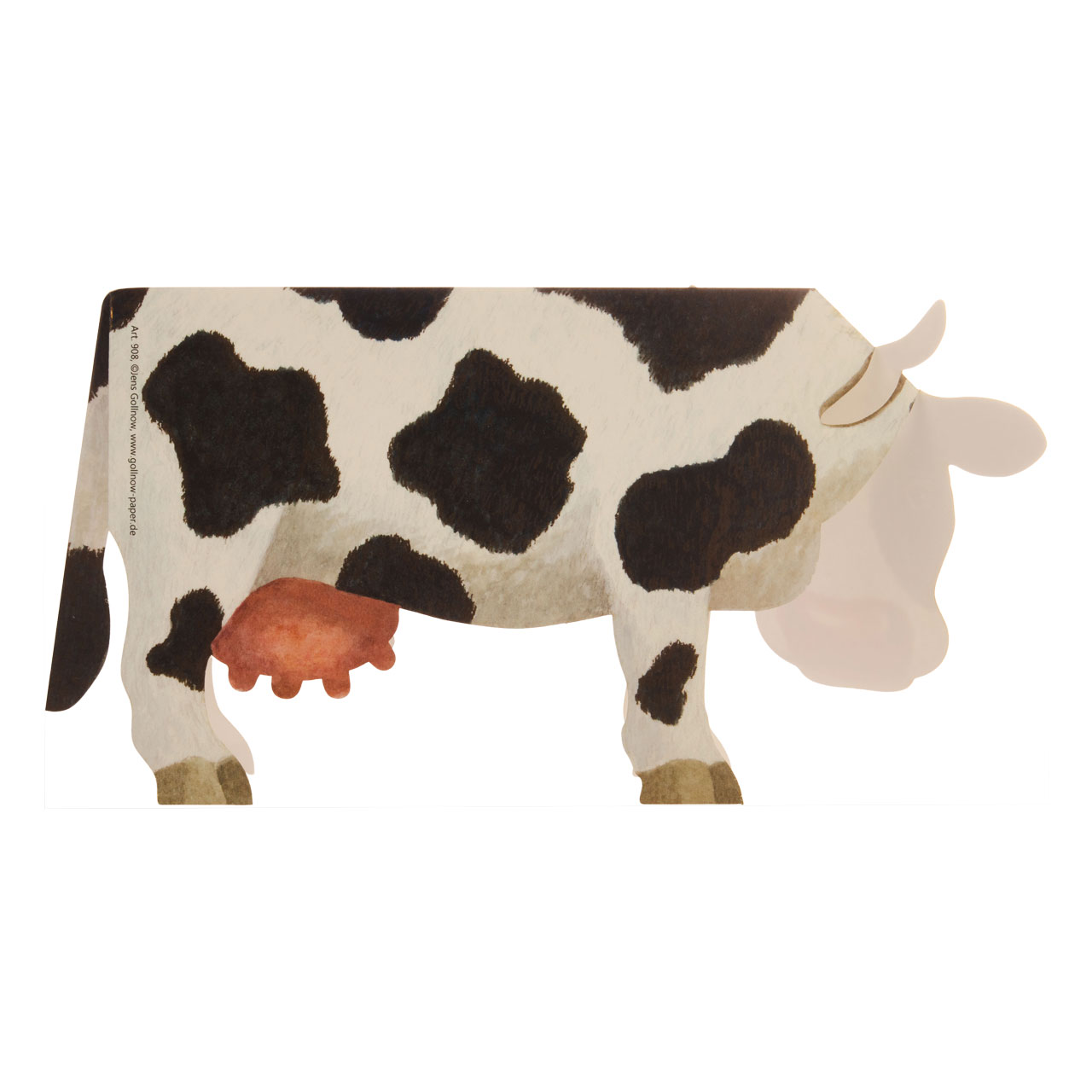 Unfolded in a few simple steps, the entire inside of the classic black and white spotted cow presents itself for good wishes, funny stories or an invitation to the next day on the farm. A grass-green, oblong envelope in a standard format also guides the pretty animal safely through the post to the recipient, who can then unfold it in a few simple steps into a sturdy figure that will be remembered for a long time to come.